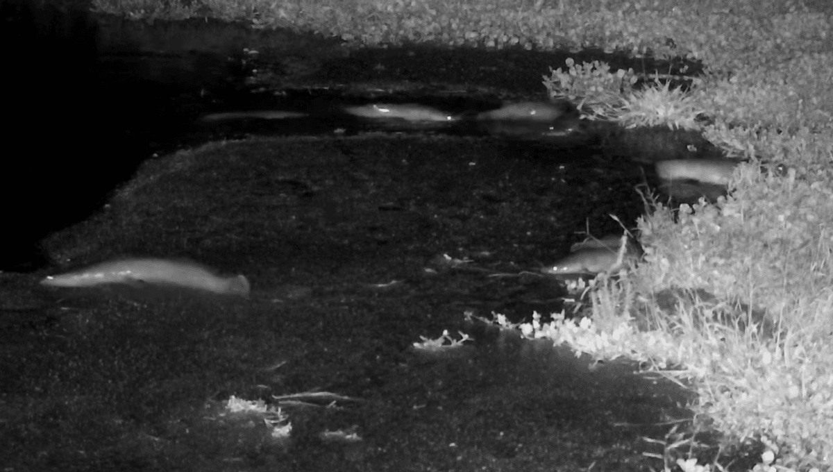 The rare footage was captured on an Africam Live Cam at Naledi Bush Lodge in South Africa. It shows several African sharptooth catfish doing their best impression of walking in what feels like an ichthyologist’s take on Paranormal Activity.