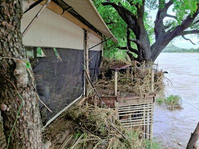 Exceptional rainfall across parts of the Lowveld caused the river to enter full flood and overtop its banks. The situation was intensified by the failure of several upstream dams on private land, resulting in a sudden surge that exceeded flood levels last recorded in 2012. Lodges situated above the established floodline were also affected.
