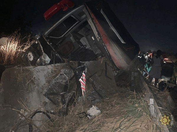 A passenger bus overturned on the Accra-Kumasi Highway at Asuboi, injuring 34 people. The bus, a 34-seater KIA Grandbird, lost control and landed on its side, blocking the road. Firefighters rescued the trapped driver, who sustained serious injuries. Other passengers suffered minor injuries and were taken to Suhum Government Hospital. All injured individuals are responding to treatment, with no fatalities reported. The cause of the accident is under investigation.