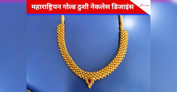 महाराष्ट्रियन गोल्ड ठुशी नेकलेस नई दुल्हन के लिए एक परफेक्ट चॉइस है. 5 से 6 ग्राम वेट में मिलने वाले ये डिजाइन हल्के होते हैं लेकिन लुक में बेहद रिच नजर आते हैं. ट्रेडिशनल डिजाइन, गोल्ड बीड्स और मिनिमल पैटर्न इसे शादी और फेस्टिव मौकों के लिए खास बनाते हैं. आजकल बहुत सी नई नवेली दुल्हन इसे पहनना काफी पसंद कर रही हैं. महाराष्ट्रियन ठुशी नेकलेस की पहचान उसके गोल गोल गोल्ड बीड्स से होती है जो एक खास पैटर्न में पिरोए जाते हैं. पहले पारंपरिक महाराष्ट्रीयन दुल्हन ही इसे पहनती थी पर अब ये पूरे भारत में पसंद किए जा रहे हैं. आज की मॉडर्न ब्राइड के लिए ठुशी नेकलेस को लाइट वेट और स्लीक लुक में डिजाइन किया जा रहा है. आज हम आपके लिए लेकर आए हैं महाराष्ट्रियन गोल्ड ठुशी नेकलेस के खूबसूरत डिजाइंस जिसे आप 5 से 6 ग्राम सोने में बनवा या खरीद सकती हैं.