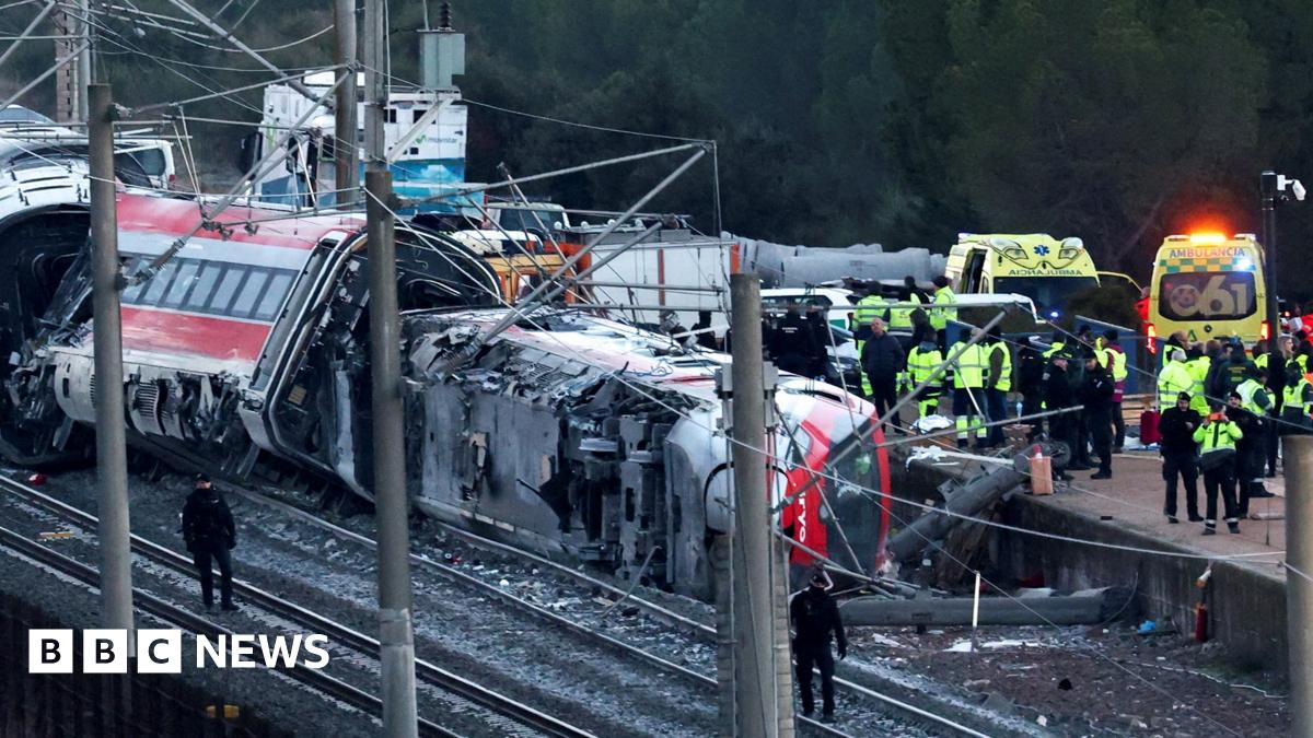 A high-speed train collision in southern Spain resulted in at least 39 fatalities and dozens of injuries. Carriages derailed, crossing onto opposing tracks and impacting an oncoming train. Investigations have begun into the crash, which occurred on a recently renovated section of the line. Survivors were urged to contact families.