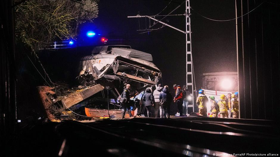A commuter train crashed near Barcelona, Spain, killing the driver and injuring 37 passengers. The collision occurred when the train struck a retaining wall that had fallen onto the tracks, likely due to heavy rainfall. This incident marks the second train accident in Catalonia this week, following a derailment caused by falling rocks.