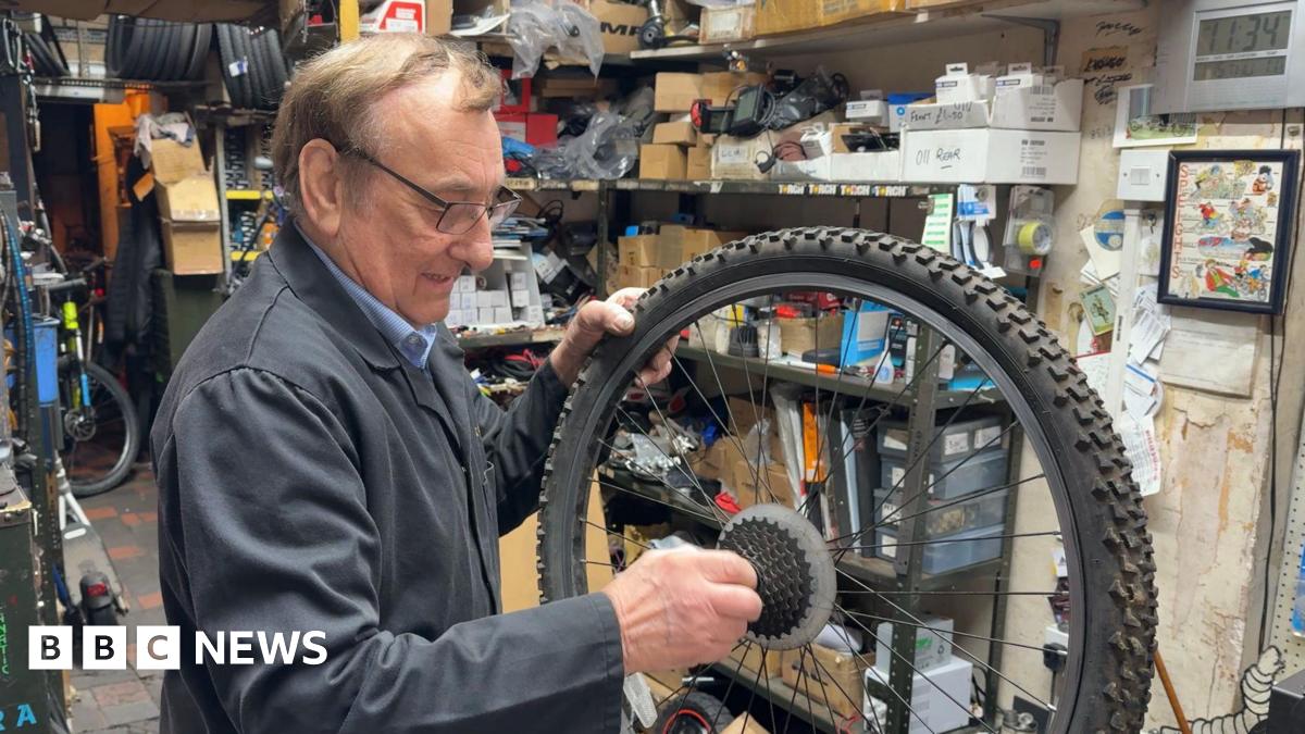 Now the owner of the shop, he works alongside his grandson selling and repairing bicycles.